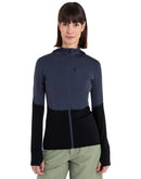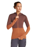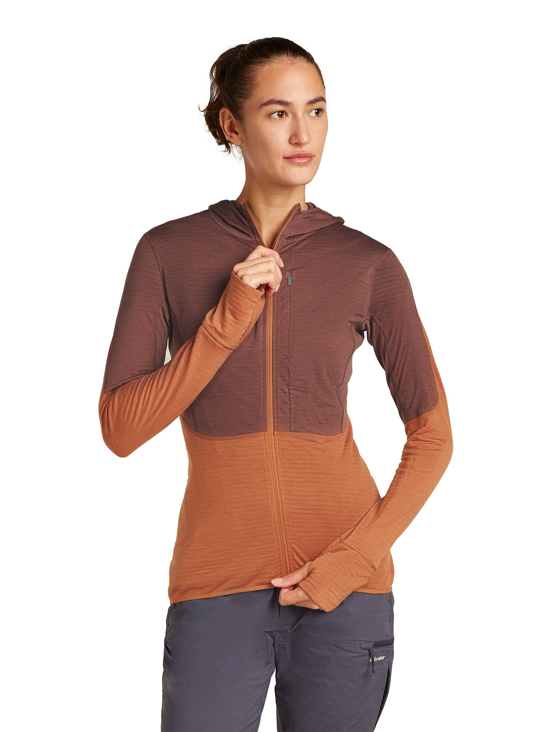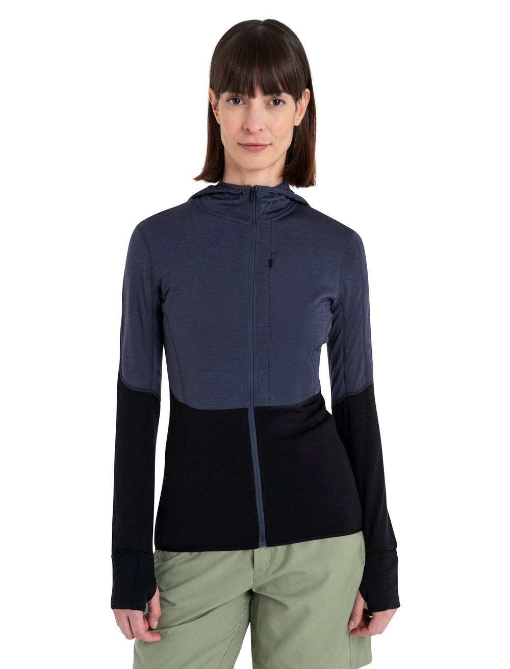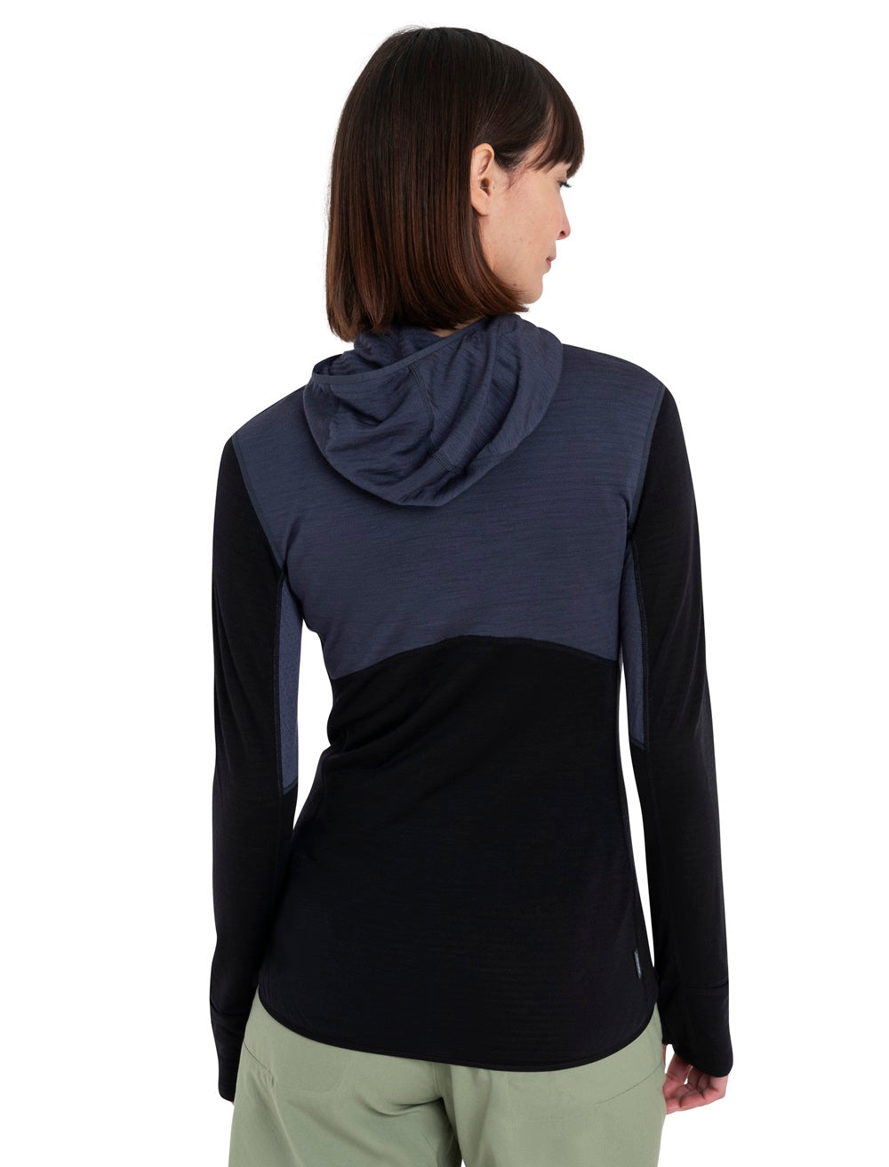 Le Icebreaker Women Descender LS Zip Hoody est une polaire fine et hautement respirante fabriquée à partir d'un mélange Lyocell-Merino à séchage rapide. Cette matière naturelle est exempte de matières synthétiques, atténue les odeurs et est particulièrement douce à porter. La structure gaufrée à l'intérieur permet d'économiser du matériau et du poids et crée des coussins de chaleur d'air supplémentaires dans les interstices. Cet effet évite le refroidissement après un effort intense et accélère en même temps l'évacuation de la transpiration grâce à la plus grande surface à l'intérieur. Grâce à cet équilibre climatique, la veste couvre une énorme plage de températures et constitue une couche intermédiaire polyvalente pour divers sports.