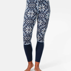 Mitteldicke Merino Leggings mit norwegischem Punktemuster vorne.