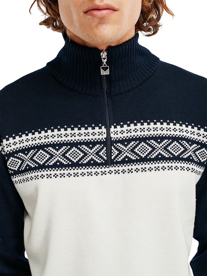 Le pull Dale of Norway Dalestolen est un pull mérinos léger et finement tricoté pour homme avec l'un des motifs norvégiens les plus populaires sur le devant et le dos. Le col zippé 3/4 se ferme joliment autour du cou et protège des courants d'air. Ce pull norvégien confortable peut être porté seul ou comme couche intermédiaire fonctionnelle pour les sports d'hiver. La fabrication dans la propre usine de Dale en Norvège garantit un haut niveau de qualité.