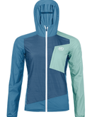 Le coupe-vent Ortovox Merino léger comme une plume pour femme est extrêmement léger avec un poids de tissu de 59 g/m² et peut être rangé dans un sac peu encombrant dans la poche poitrine. Le tissu ultra fin est presque coupe-vent grâce à sa structure tissée dense et est également légèrement déperlant grâce à une imprégnation DWR sans PFC. Plus de la moitié du matériau principal à l'avant et à l'arrière est constitué de laine mérinos la plus fine, qui assure la rétention de chaleur nécessaire et supprime l'odeur de sueur. Le tissu est très résistant à l'abrasion et s'il est mouillé, il sèche à nouveau en peu de temps. Les ourlets élastiques au niveau de la capuche, des manches et des hanches permettent à la veste coupe-vent d'être ajustée près du corps afin que les coussins d'air chaud restent sur le corps. La coupe est très près du corps et conçue pour que le coupe-vent Merino ne puisse être porté que sur un T-shirt. Si vous souhaitez mettre une fine couche de polaire en dessous, vous devez choisir une taille plus grande (en tenant compte de la longueur croissante des manches). La veste peut être utilisée de différentes manières, de l'alpinisme au cyclisme en passant par la course à pied.
