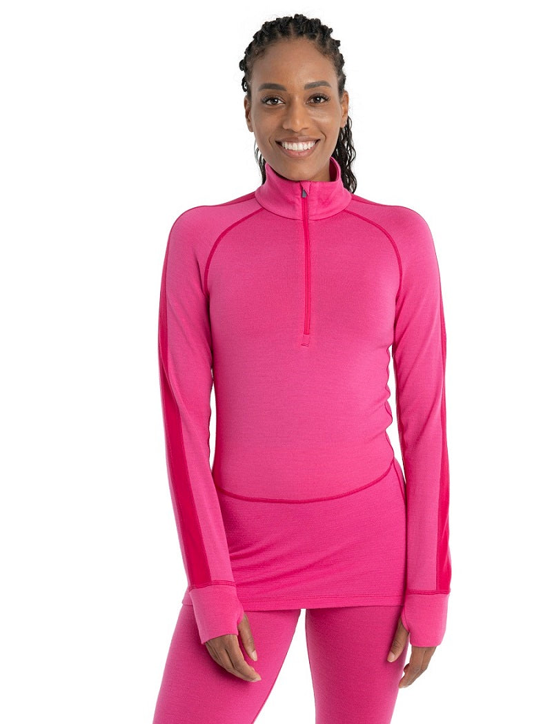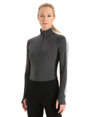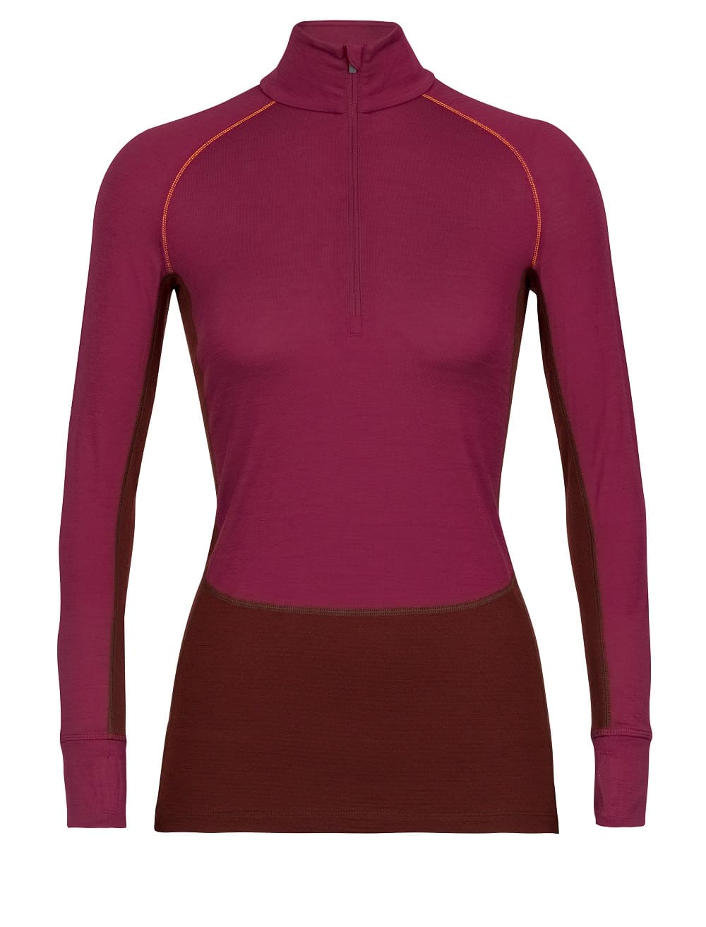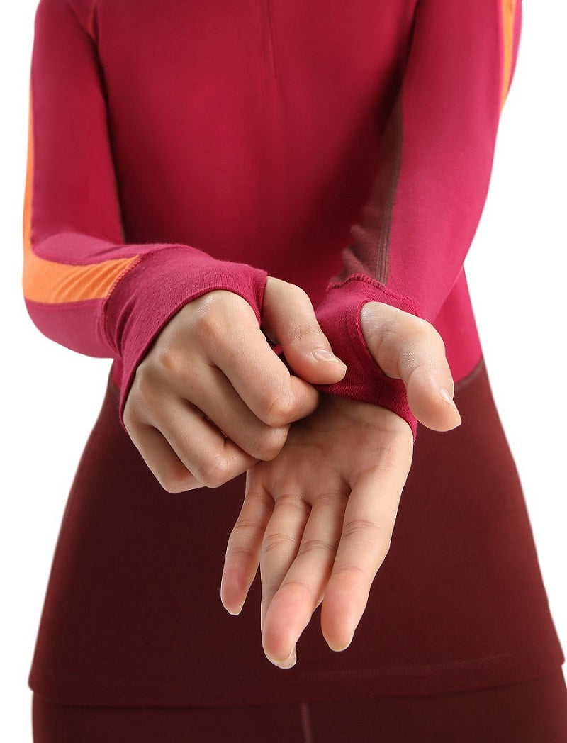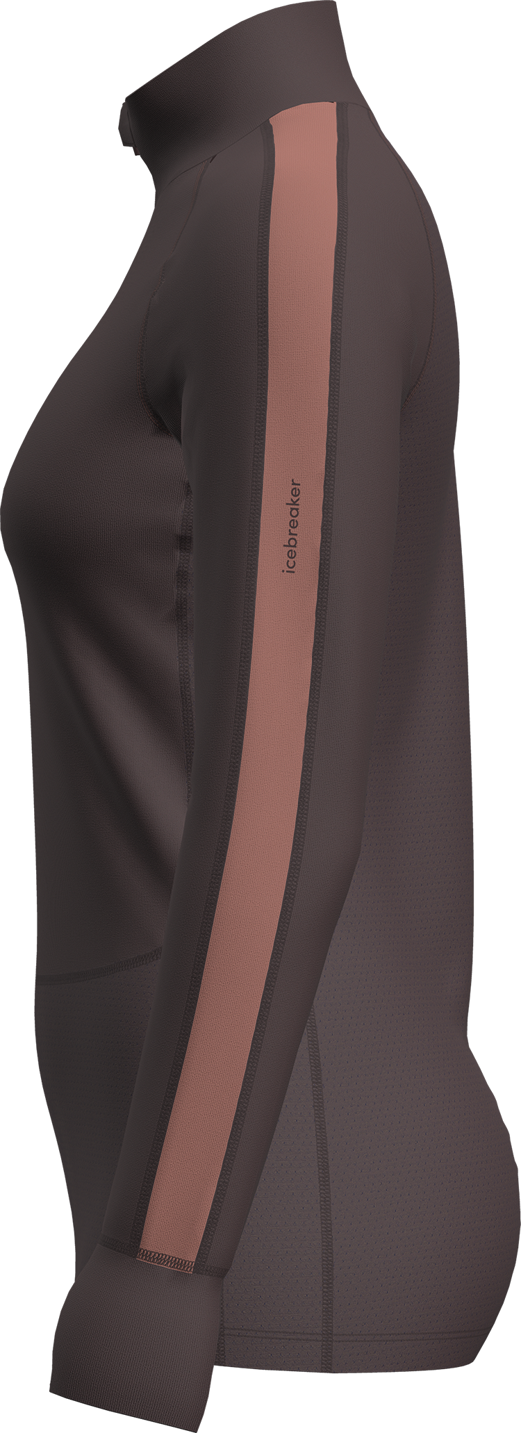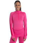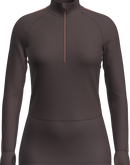 Demi-zip chaud en mérinos pour femmes avec passants pour les pouces et zones en mesh.