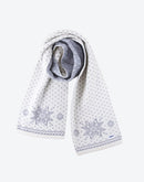 Dieser Norweger Merino Schal ist kuschelweich und hat ein zeitloses Schneeflockenmuster im skandinavischen Stil. Die feine Strickqualität schmiegt sich um den Hals und sorgt für komfortable Wärme, egal ob beim Skifahren oder im Alltag.