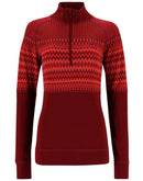 Avec son épaisseur de tissu de 235 g/m², le Kari Traa Silja Wool Half Zip offre beaucoup de chaleur même pour les journées froides de ski. Le haut de sous-vêtement de ski chaud en mérinos avec col demi-zippé équilibre les motifs norvégiens traditionnels avec un design moderne. Typiquement pour les marques scandinaves, la coupe est fine et longue, de sorte qu'il n'y a pas de points froids lors de la transition vers les caleçons grâce à la bonne couvrance. Le motif norvégien s'étend sur la poitrine et se poursuit dans la zone du haut des bras. Cela crée un design extraordinaire pour ceux qui trouvent le monochrome trop ennuyeux. Grâce à la laine 100 % mérinos, les manches longues se distinguent par un confort et un confort climatique les plus élevés.