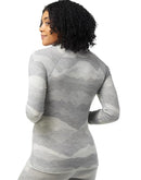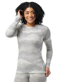 Sous-vêtement chaud en mérinos pour femme avec motif montagne et col rond.