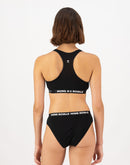 Soutien-gorge de sport en laine mérinos à maintien moyen. Le tissu Merino Mesh respirant au dos et la ceinture douce avec l'inscription Mons Royale assurent un excellent ajustement du soutien-gorge Merino et un climat agréable. La laine mérinos peut stocker beaucoup d'humidité et garde la peau sèche pendant longtemps. Ceci et la structure naturellement antibactérienne de la fibre de laine évitent les effets de frottement.