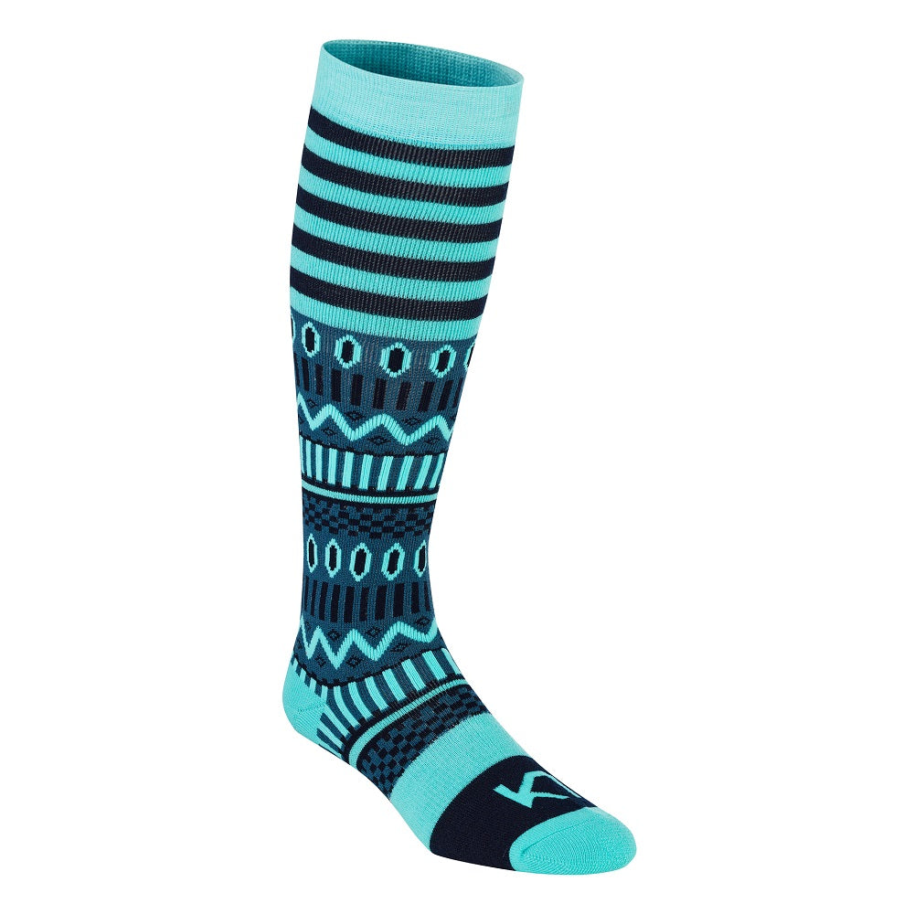 Die Dale of Norway Cortina Knee Socks Knee sind mitteldicke Skisocken mit einem traditionellen Norwegermuster. Der Unterfuß sowie der Zehen und Fersenbereich sind extra dick gepolstert für einen weichen und dämpfenden Komfort. Die Merinowolle sorgt für ein trockenes und warmes Fußklima und unterbindet Gerüche.