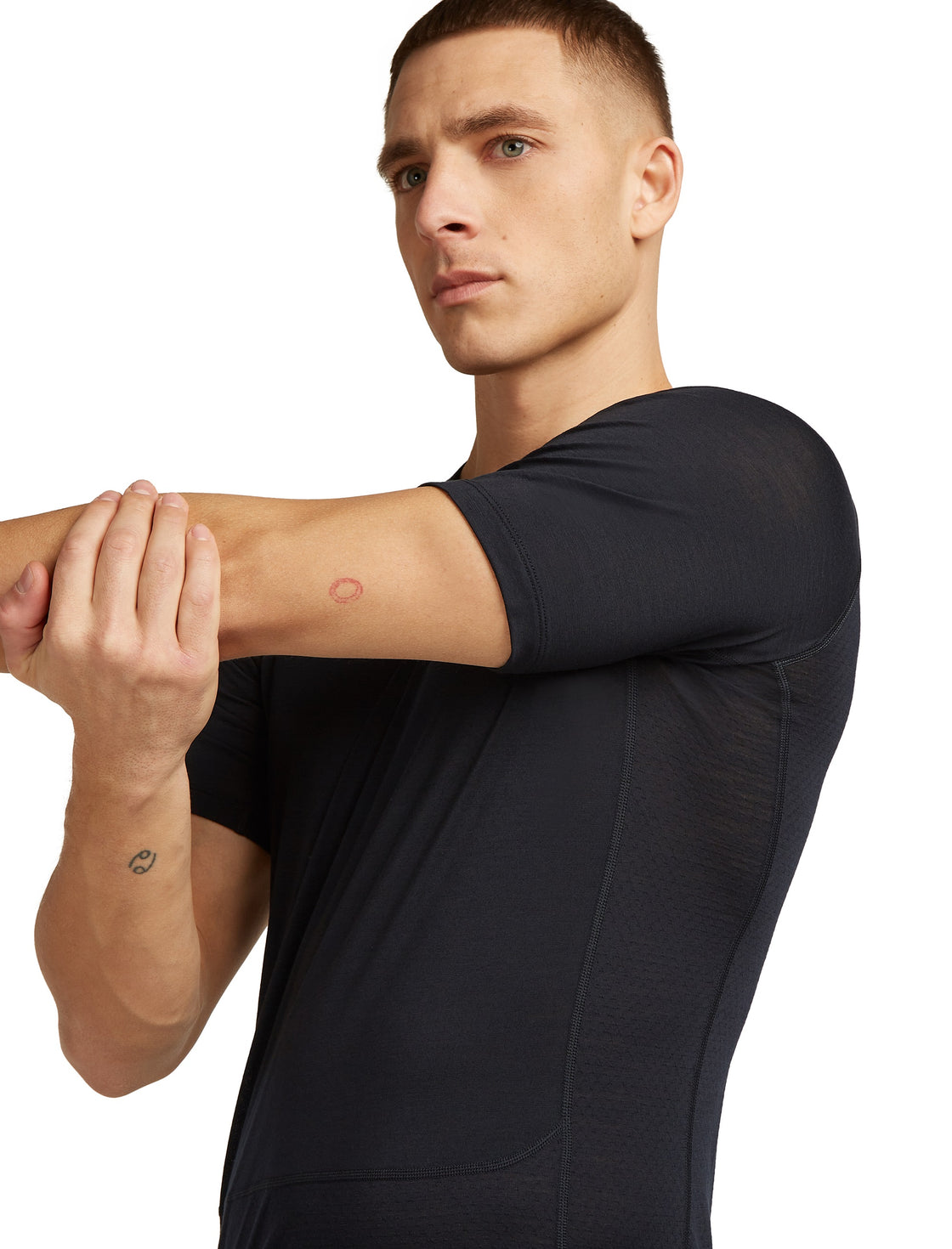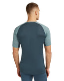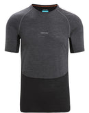 L'Icebreaker 125 Zone Knit Short Sleeve pour homme est une fine chemise fonctionnelle Tencel® Merino fabriquée dans un tissu extra doux avec des zones partielles en mesh sous les aisselles. réalisé sur le bas du ventre et le dos, ce qui améliore encore l'évacuation de la transpiration au niveau de ces zones. Grâce à sa coupe anatomique, le T-shirt hautement respirant est infroissable et convient aussi bien comme sous-vêtement sous d'autres couches que seul. La série CoolLite® d'Icebreaker, qui associe la laine mérinos à la fibre d'amidon végétal Tencel®, a été spécialement développée pour les températures estivales élevées ainsi que pour la transpiration abondante. Le mélange de matériaux sans plastique a un effet de refroidissement plus fort et un temps de séchage nettement plus court. La structure du tissu lisse et douce. et les coutures plates de haute qualité évitent les points de friction sous le sac à dos.
