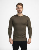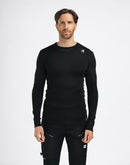 Warmes Merino Rundhals Longsleeve für Herren mit Rippstrickverstärkungen.