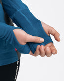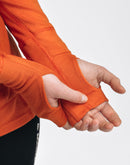 - Daumenschlaufen und Sichtöffnung am linken Ärmel für Armbanduhren