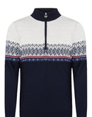 Der Dale of Norway Hovden Sweater kann entweder als dünner Merinopullover im Alltag oder als leichter Midlayer beim Skifahren getragen werden. Das klassische Norweger Design ist umlaufend auf Vorder-und Rückseite und gibt einen erfrischenden nordischen Look. Durch die feine Merinowollqualität trägt sich der Pullover angenehm weich und kratzt nicht.