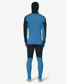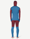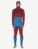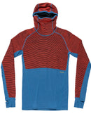 Das Devold Tuvegga Kapuzenshirt für Herren ist eine Neuheit auf dem Merino Unterwäsche Markt, denn es lässt sich beidseitig tragen und vereint somit eine warme und eine kühlere Seite in einem Stück. Je nach Witterung oder sportlicher Intensität lässt sich das Merino Longsleeve durch Wenden der Seite den Temperaturgegebenheiten anpassen. Die glatte Seite nach innen getragen bewirkt eine schnelle Schweißaufnahme, da die grob gerippte Außenseite dann eine größere Oberfläche bietet (Kapillareffekt) und sich eine kanalisierende Wirkung entfaltet. Dreht man die Rippenstruktur auf die Innenseite, entstehen zusätzliche Luftpolster und verstärken die Wärmeleistung. Die bereits von Natur aus überragende Temperaturregulierung von Merinowolle wird somit noch um weitere Flexibilität ergänzt. Die Kapuze passt auch unter einen Helm und die Daumenschlaufen schützen im Übergang zu den Handschuhen vor Schnee und Kälte. Unter den Achseln und am oberen Rücken befindet sich ein dünnerer Merino Mesh Einsatz, um für gezielt platzierte Ventilation beim Rucksacktragen und bei starker Anstrengung zu sorgen.