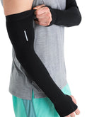 Die Icebreaker 200 ZoneKnit Armsleeves sind dank 100% Merinowolle ein wärmendes Upgrade für unterwegs, wenn das Kurzarmshirt doch mal zu kalt wird. Sie lassen sich durch die hochelastische Stoffbeschaffenheit leicht überziehen und verrutschen durch eine Daumenschlaufe und silikonisierte Buttons an der oberen Ärmelrandinnenseite nicht. Auf der Armunterseite sorgt das Eylet Meshgewebe für schnellere Abtrocknung. Außerdem bieten reflektierende Details zusätzliche Sicherheit im Dunkeln. Der eng anliegende Stoff schafft zudem eine gute Kompressionswirkung.