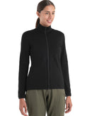 Die Icebreaker Women Elemental Zip ist eine Thermo Fleece Jacke aus 560g/m² dicker Merinowolle und hervorragender Wärmeleistung. Gleichzeitig verhindert die temperaturausgleichende Wirkung der Wolle bei starker Aktivität schnell zu überhitzen. Die Innenseite ist leicht angeraut und besonders kuschlig. Der Merino Midlayer ist geruchsbindend und atmungsaktiv und überzeugt durch eine natürliche Wohlfühlwärme, die du bei herkömmlichen Fleece aus Kunstfasern lange suchen wirst! Die Umwelt freut sich außerdem gleich mit, da beim Waschen kein Mikroplastik im Abwasser landet.