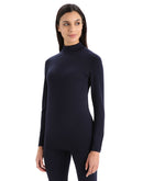 Diese warme Damen Merino Funktionswäsche mit hohem Kragen ist ein Must-Have für alle, die sich an Körper und Hals vor Kälte schützen wollen. Der Komfort von 100% Merinowolle sorgt für ein angenehmes Wohlfühlklima und reguliert die Körpertemperatur bei wechselnder Aktivität. Anders als bei schnellableitender Kunstfaserwäsche kühlt man mit dem Icebreaker Tech Long Sleeve Turtle Neck nach dem Schwitzen nicht aus und Gerüche werden natürlich unterbunden. Der klassische Icebreaker Bodyfit ist zwar anliegend, aber nicht einengend.