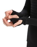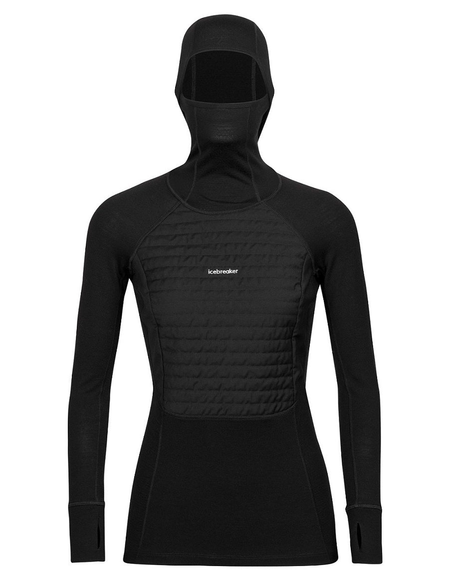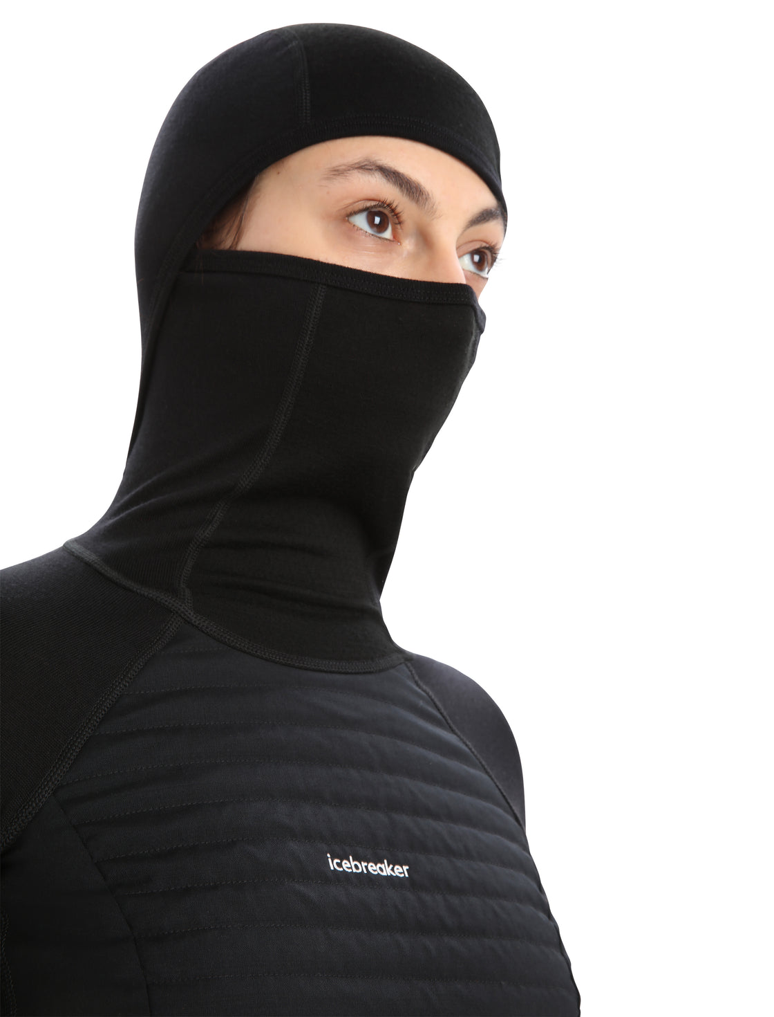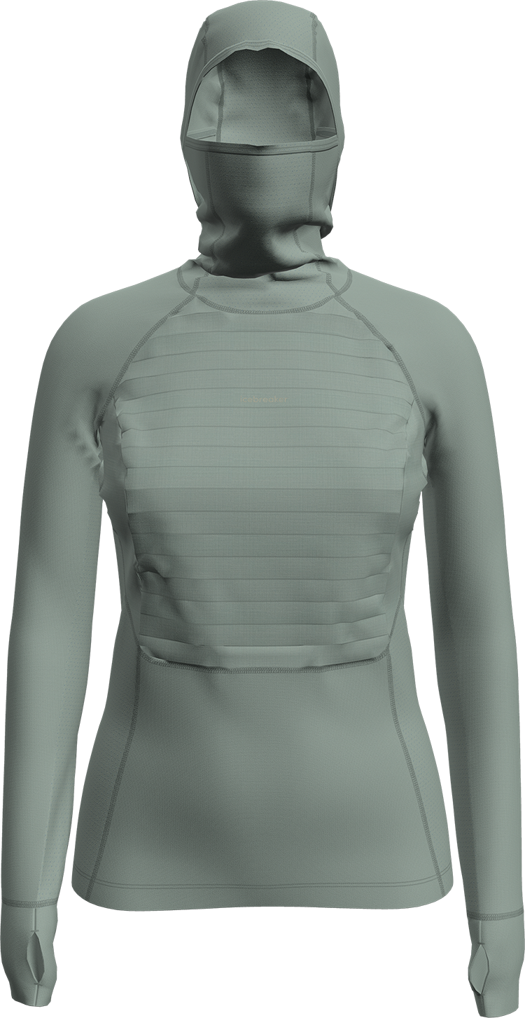 Dieser technische Merino Baselayer mit MerinoLoft® Einsatz im oberen Brustbereich kombiniert 1. und 2. Lage in einem Kleidungsstück. Der Icebreaker ZoneKnit® Hoodie für Damen bietet nach dem Bodymapping-Prinzip mehr Isolation an den kälteempfindlichen Körperzonen, um für noch mehr Temperaturausgleich zu sorgen. Die integrierte Balaclava stellt durch einen Schlitz an der Rückseite auch für Frauen mit Pferdeschwanzfrisur kein Hindernis dar und lässt sich auch als Wärmeschutzkragen umfunktionieren. Daumenschlaufen erleichtern das Drüberziehen von weiteren Schichten und dienen zusätzlich als Pulswärmer.