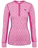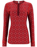 Das Kari Traa Rose Longsleeve hat eine modische Knopfleiste und ein traditionelles und gleichzeitig modernes Norweger Muster und bietet durch 100% Merinowolle herausragenden Tragekomfort ohne zu kratzen. Es wärmt zuverlässig und ist atmungsaktiv, ohne Geruchsbildung eine Chance zu geben. Die verarbeitete Merinowolle ist mulesingfrei und besonders nachhaltig, weil sie vollständig biologisch abbaubar ist.