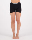 Mit dieser länger geschnittenen Merino Boxershorts für Frauen gehörst du auch zu denjenigen, die den Tag im Freien voll ausnutzen und dabei keine Kompromisse bei der Ausrüstung eingehen wollen. Der klimaausgleichende Effekt der Merinowolle und der weiche Tragekomfort machen die Mons Royale Hannah Hot Pant zu einem unverzichtbaren Basic in deiner Outdoor Garderobe. Wenn du mal länger unterwegs bist, kannst du sie auch guten Gewissens ein paar Tage am Stück tragen, weil die Wollfaser von Natur aus bakterienwidrig ist.