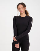 Das Mons Royale Olympus Longsleeve ist eine warme Merino Funktionsunterwäsche für Damen mit Raglan Ärmeln und einem athletischen langen Schnitt. Feinste neuseeländische Merinowolle in 250g/m² dicker Stoffstärke machen dieses Merino Longsleeve zur ersten Wahl an kalten Skitagen. Elastische Merino Mesh Panels unter den Armen ermöglichen mehr Armbewegungsfreiheit und verbessern den Wärmeaustausch unter der Achselpartie. Die Daumenschlaufen dienen auch als Schneeschutz unter dem Skihandschuh und erleichtern das Anziehen der nächsten Bekleidungsschicht. Verabschiede dich jetzt von Frösteln im Skilift oder beim Pause machen und gönn dir diesen natürlichen Wärmekomfort, der auch erhalten bleibt, wenn das Material vom Schwitzen feucht ist. Mons Royale verarbeitet ausschließlich Merinowolle ohne Mulesing und steht für höchste Qualität.
