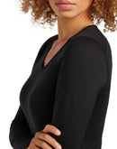 Das Merino Langarm Shirt mit femininem V-Ausschnitt ist dank der Merinowolle (100% Merino / 200g/m²) besonders klimaneutral und geruchsbindend. Merino Unterwäsche von Icebreaker ist von höchster Qualität im Hinblick auf die neuseeländische Wollqualität und die neueste Verarbeitungstechnik, die dieses Merino Longsleeve so angenehm weich macht. Fühl dich wohl mit der reinen Natur auf der Haut, egal ob zu Hause oder unterwegs auf deinem Outdoor Trip. Mit Icebreaker Merino Bekleidung bist du immer gut und funktionell angezogen und musst dir keine Sorgen um unangenehmen Schweißgeruch machen.