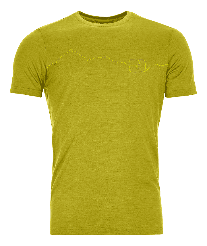 Leichtes Bergsteiger Merino T-Shirt für Herren mit einer Gipfelpanoramalinie. Die besonders atmungsaktive Materialmischung, bei der Merinowolle mit der holzbasierten Zellulosefaser Tencel® kombiniert wird, verleiht diesem Ortovox Funktionsshirt eine seidenähnliche Haptik und mehr Stabilität. Egal ob auf der gemütlichen Tagestour oder auf der mehrtägigen Gipfelüberschreitung hast du mit diesem schnelltrocknenden Shirt für jede Witterung den richtigen Baselayer. Kühlen bei Hitze und wärmen bei Kälte, geht das? Ja, die Wolle hat's drauf - überzeug dich selbst!