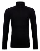 Das Ortovox 230 Competition Zip Neck für Damen vereint die Vorteile von Merinowolle und Kunstfasern und wurde speziell für schweißtreibende Wintersportarten entwickelt, bei denen es darauf ankommt, den Wärmehaushalt der verschiedenen Körperzonen optimal zu regeln. Dafür wurden bei der Ortovox Competition Linie verschieden dicke Stoffstärken entsprechend platziert. Der Stoff passt sich durch 2 verschiedene Materialstärken den Wärmezonen des Körpers an. An den schnell aufheizenden Partien kommen kanalisierende Riffelstrukturen in einer leichteren Stoffstärke von 190g/m² zum Einsatz, während kältesensible Bereiche durch den 230 g/m² dicken Hauptstoff warm gehalten werden. Die durch ein nahtloses Rundstrickverfahren hochelastische Skiunterwäsche ist aufgrund der Materialzusammensetzung schneller trocknend und besonders für starkschwitzende Personen empfehlenswert. Die Ortovox 230 Competition Serie wurde bereits mehrfach durch den ISPO Ski Award und den Outdoor Industry Award ausgezeichnet.