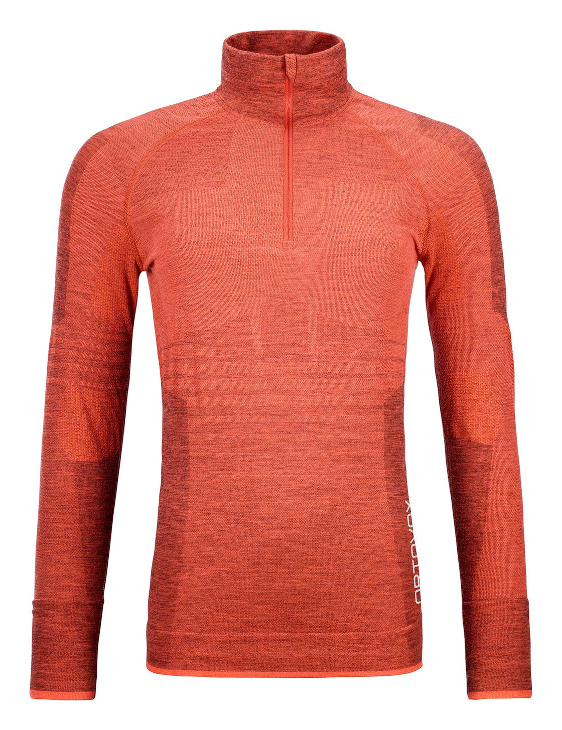 Damen Merino Skishirt mit Zipkragen und anliegendem Rundstrickverfahren.