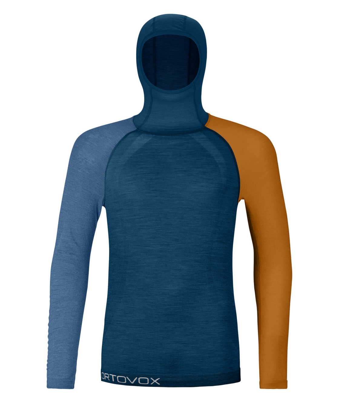 Süperdünnes Merino Kapuzenshirt für Herren mit schnelltrocknendem Materialmix.