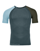 Dieses hauchdünne Ortovox Merino Shirt kühlt dich ab, wenn die Bedingungen zu heiß werden! Ortovox Competition Light Merino Unterwäsche ist MADE IN EUROPE und vereint die Vorteile von Merinowolle mit den schnelltrocknenden Eigenschaften von Polyamid. Um sich perfekt an die unterschiedliche Temperierung der verschiedenen Körperzonen anzupassen, kommt bei dieser dünnen Merino Funktionsunterwäsche ein nahtfreies Rundstrickverfahren mit unterschiedlichen Strickstrukturen und Materialkombinationen zum Einsatz, die nicht nur kühlend wirken, sondern auch eine optimale Passform durch sehr hohe Dehnfähigkeit ermöglichen.. Das Herren Merino T-Shirt ist athletisch geschnitten und überzeugt durch sehr hohe Atmungsaktivität und super Bewegungsfreiheit und macht es somit zum perfekten Merino Funktionsshirt für schweißtreibende Sportarten.