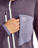 Die Merino Fleece Grid Jacke von Ortovox ist ein funktioneller Damen Midlayer mit Waffelstruktur und Merinowolle auf der Innenseite. Die frei bleibenden Zwischenräume bringen wärmende Luftpolster und eine bessere Atmungsaktivität. Die Merinoinnenseite kann sehr viel Schwitzfeuchtigkeit absorbieren und an die äußere Schicht abgeben. Außerdem spart die Waffelkonstruktion Materialgewicht und somit Packvolumen ein. Die Merino Fleece Jacke verfügt über eine kleine und eine große Brusttasche, in der auch eine Wanderkarte platzt hat. Eine ergonomische Schnittführung und ein hohes Stretchvermögen runden den Tragekomfort ab. Die Ortovox Fleece Grid Serie wurde in Bayern designed und in der Europäischen Union hergestellt. Die Merinowolle stammt aus zertifiziert Mulesing freier Schafhaltung in Tasmanien