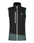 Diese Merino Fleece Weste von Ortovox ist ein funktioneller Damen Midlayer mit Waffelstruktur und Merinowolle auf der Innenseite. Die sich in den Zwischenräumen bildenden Luftpolster bringen zusätzliche Wärmeleistung und durch den kanalisierenden Effekt wird der Schweiß schneller abgeleitet. Die Merinoinnenseite kann sehr viel Feuchtigkeit absorbieren und an die äußere Schicht abgeben. Außerdem spart die Waffelkonstruktion Materialgewicht und somit Packvolumen ein. Die Merino Fleece Grid Weste verfügt über eine kleine und eine große Brusttasche, in der auch eine Wanderkarte oder andere Bergsteigerutensilien Platz haben. Eine ergonomische Schnittführung und ein hohes Stretchvermögen runden den angenehmen Tragekomfort ab. Die Ortovox Fleece Grid Serie wurde in Bayern designed und in der Europäischen Union hergestellt. Die Merinowolle stammt aus zertifiziert mulesingfreier Schafhaltung in Tasmanien