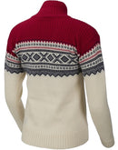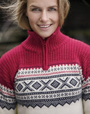 Der Ulvang Marius Half Zip Sweater für Damen ist das richtige für Skandinavien Liebhaberinnen. Das Design orientiert sich an dem seit Generationen verwendeten Traditionsmuster, welches die Liebe der Norweger für die Natur symbolisieren soll. Der warme und weiche Norwegerpullover ist nach dem OEKO-TEX® Standard 100 zertifiziert und besteht zu 100% aus mulesingfreier Schurwolle. Er ist mit wellig gestrickten Bündchen an Kragen, Ärmeln und Saum eingefasst, um an diesen Stellen die natürliche Elastizität der Wolle noch zu erhöhen. Der hohe Stehkragen schützt vor Kälte und Wind und lässt sich zum An-und Ausziehen mittels Reißverschluss öffnen. Das zeitlose norwegische Design ist gut kombinierbar und kommt immer gut an. Der Marius Half Zip Womens ist weit und groß geschnitten, da er auch gerne als oberste Schicht getragen wird. Bei empfindlicher Haut empfehlen wir ein langärmliges Shirt mit hohem Kragen darunter zu ziehen.